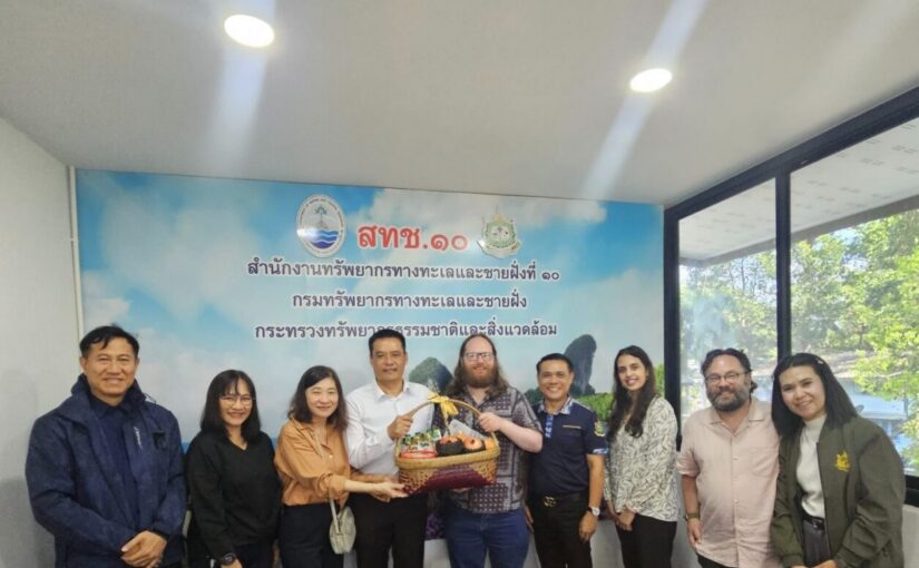 Figure 2: Project team from the University of York (Dr Paul Hudson, Dr Joshua Kirshner and Dr Saba Joshi) and Mahidol University (Prof. Suvaluck Satumanatpan, Dr Kamalaporn Kanongdate and Dr Kampanag Bhaktikul) with the Marine coastal resilience team in Krabi, Thailand